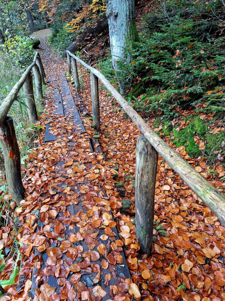 Woda spływa po warstwach piaskowca, tworząc efekt maleńkich kaskad, które mruczą i szemrzą nieustannie. Idąc ścieżką wzdłuż Tanwi, co jakiś czas przechodzi się przez drewniane mostki, z których można podziwiać te niezwykle kojące widoki.